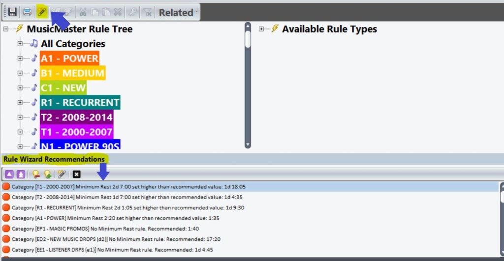If you have had the privilege of sitting in a therapy session, you are aware of the benefits of having someone look at your life’s configuration and help recommend ways to get back on track. Did you know in MusicMaster, you have a built-in music scheduling therapist at your disposal too? One of the overlooked features in your rule tree is the Rule Wizard that gives you a list of recommendations to make to your rule tree based upon your last scheduling schedule.
